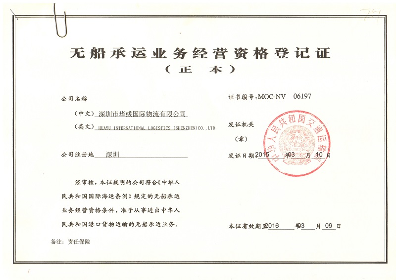 深圳市华彧国际物流有限公司2012年成立,注册资金500万,是由中国商务部批准的一级货运代理企业, 并获交通部颁发的“无船承运人”资格(MOC-NV06197)。我司主要经营海运、空运、陆运、特种柜运输以及多式联运进出口货物的国际运输代理业务,包括订舱、仓储、运输、中转、集装箱拼箱、拆箱、报关、报验、保险以及相关的咨询业务等。近年来,我们又将业务拓展至一般贸易进口、快递进出口以及中港运输服务,包含进口清关、报检、监管仓储、送货上门等一般贸易进口业务和快递进出口以及中港运输业务。我们拥有一支经验丰富、业务娴熟的专业员工队伍,定位于提供第三方物流服务,专注于“严谨、务实、拼搏、创新”的经营理念。